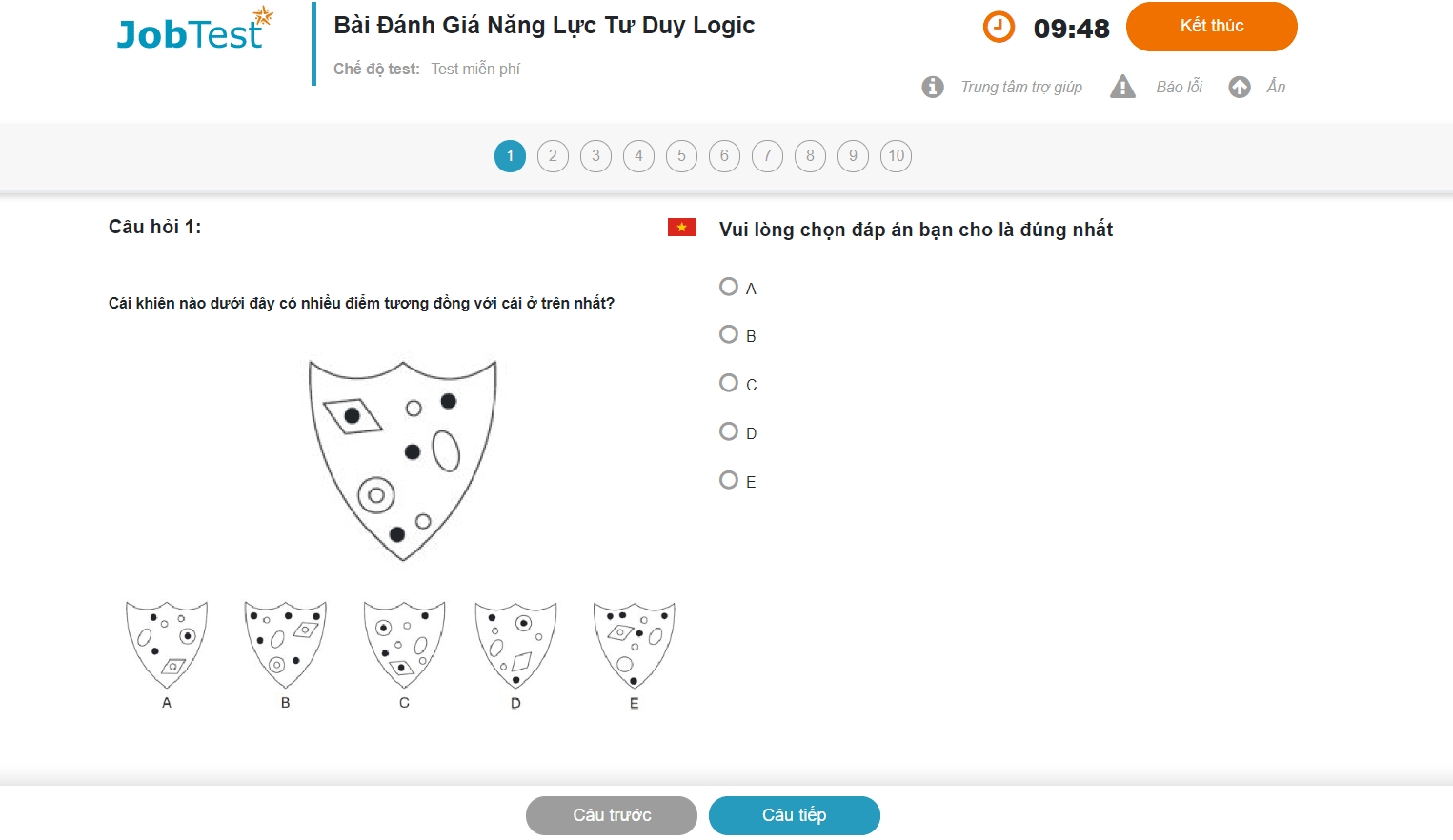 Tại JobTest, chúng tôi cung cấp cho bạn đầy đủ những bài test với các cấp độ tư duy Logic. Bạn có thể sử dụng Gói các bài Test tư duy Logic gồm nhiều bài Test được tổng hợp lại. Việc thực hiện thường xuyên những bài tập này là cách tốt nhất để bạn nâng cao khả năng của bản thân, luyện cho cách suy nghĩ và lập luận trở nên sắc bén hơn.